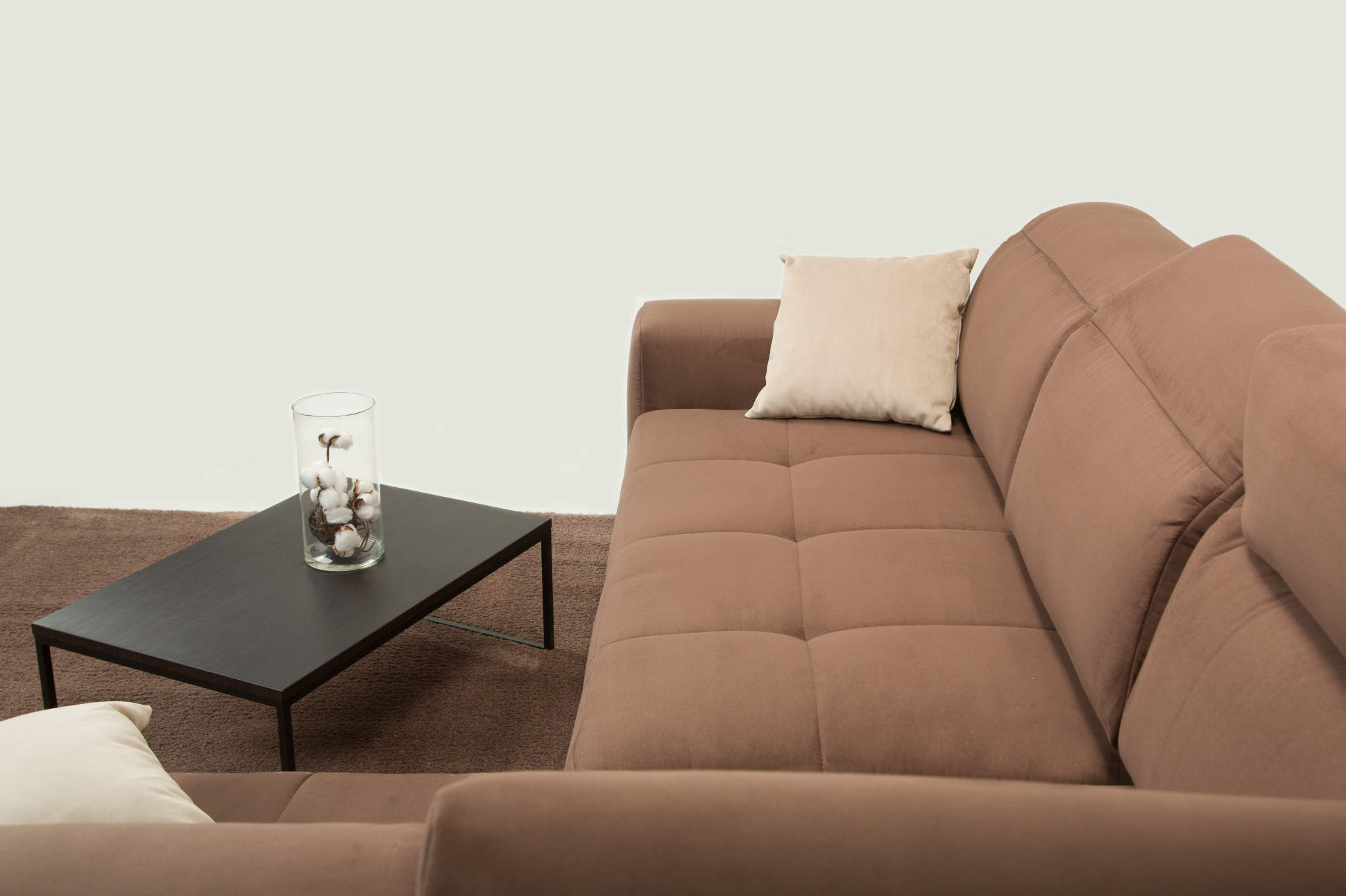 Особенное внимание уделялось созданию дизайна дивана: прямая отстрочка на подушках дивана, утяжки на сидении и широкий подлокотник - придают оригинальность данной модели. Стоит отметить, что регулируемые по высоте подушки при раскладывании поднимаются вверх, их не нужно убирать, и они не мешают во время сна.