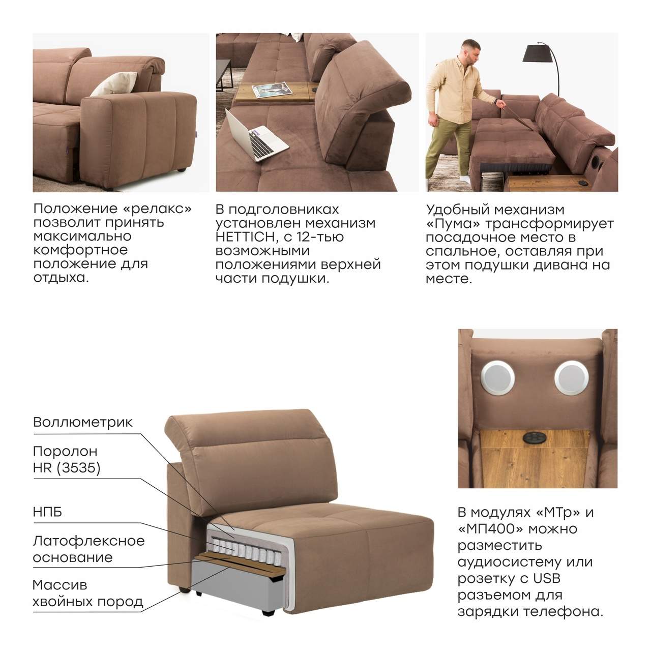 «Монреаль» – модульная коллекция, сочетающая в себе максимальный комфорт и презентабельный внешний вид. Особый статус дивану придает сочетание индивидуального дизайна и современных технологий.