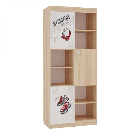 Состоит из 6-ти открытых ниш и 3-х закрытых. Стеллаж идеально подойдет для книг, игрушек и мелочей. Эффектный принтерный рисунок на фасадах выдержан в общем стилистическом решении. Рисунок устойчив к истиранию и ультрафиолету.