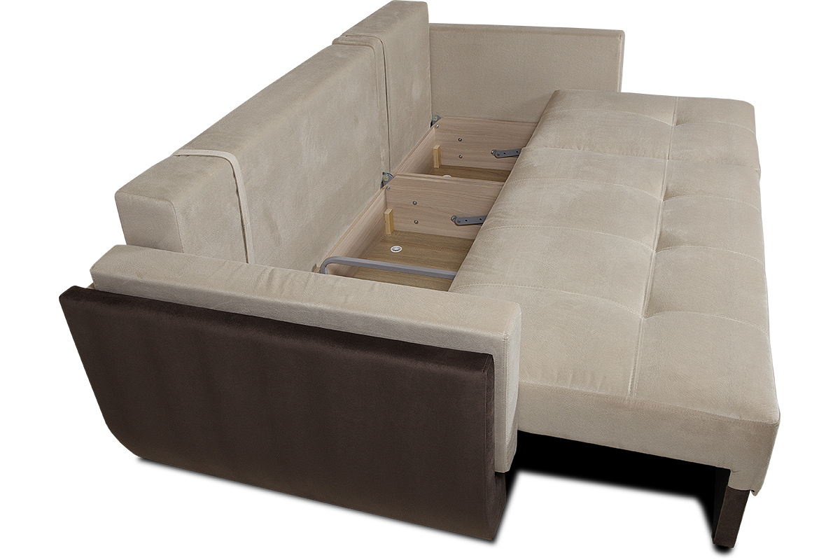 Диван изготовлен из фанерного бруса (ламель), фанеры, ЛДСП, МДФ, ДВП, Латы, механизм трансформации «Тик-Так».