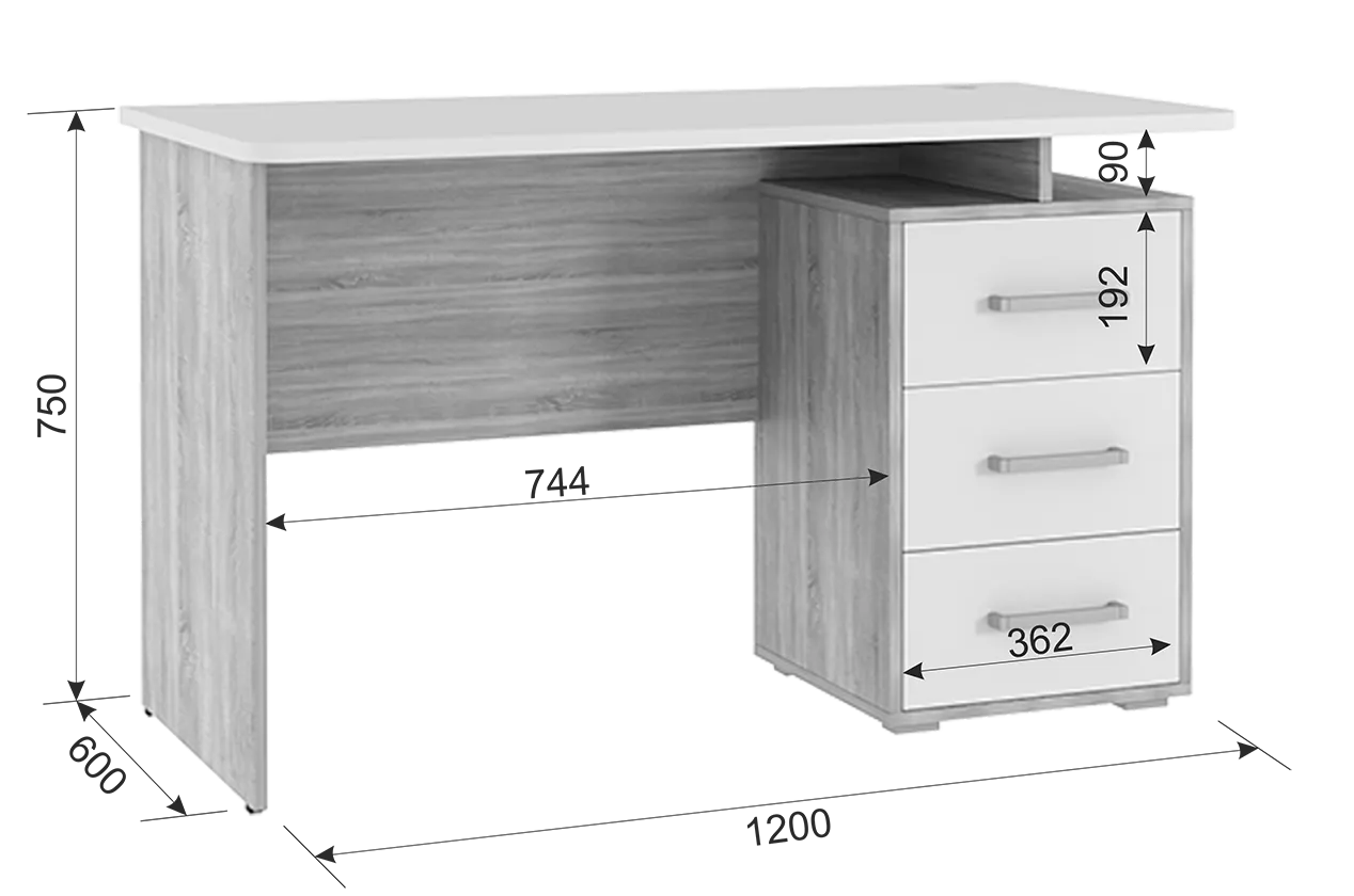 Состоит из тумбы с 3-мя выдвижными ящиками.