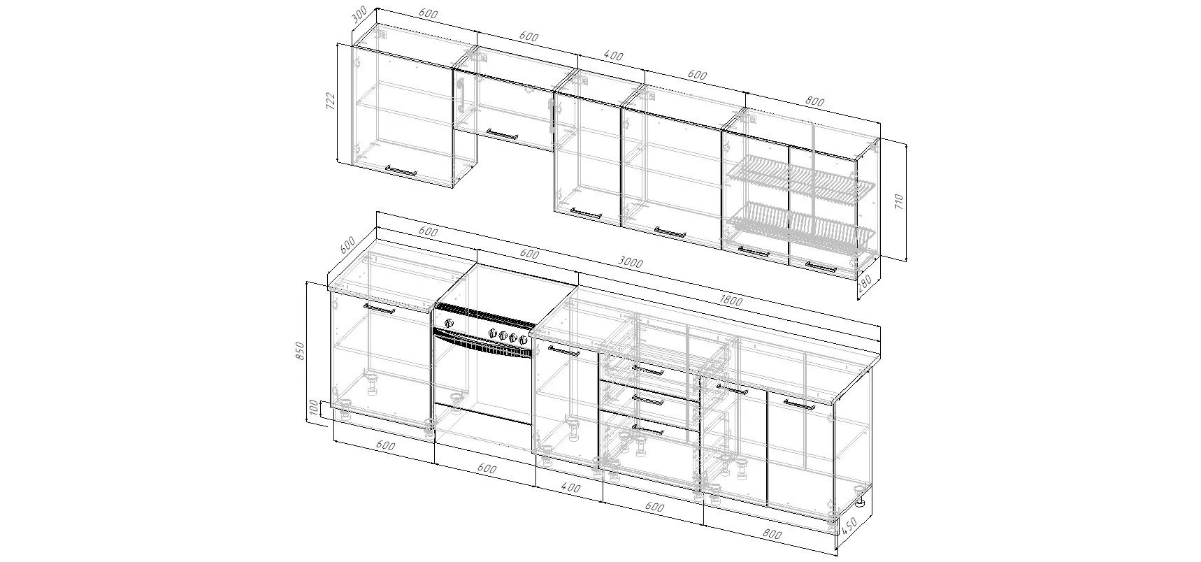 ВС760 Модуль верхний с посудосушителем (ШхГхВ) 600х300х710мм -1 шт