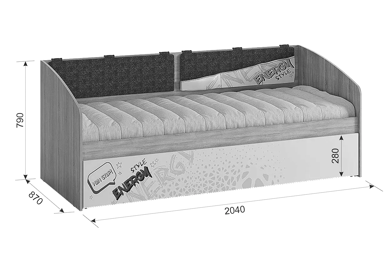 Детская «Энерджи» - это стильная, современная детская, которая понравится каждому ребенку. Рисунок устойчив к истиранию и ультрафиолету. Стильный принтерный рисунок на фасаде, и карманах. Чехлы подушек съемные, что позволит обеспечить чистоту и порядок.