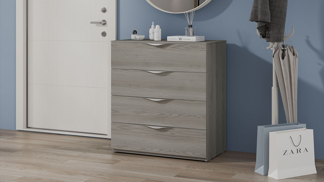 Комод из коллекции "Либерти" имеет 4 вместительных ящика с оригинальными металлическими ручками.