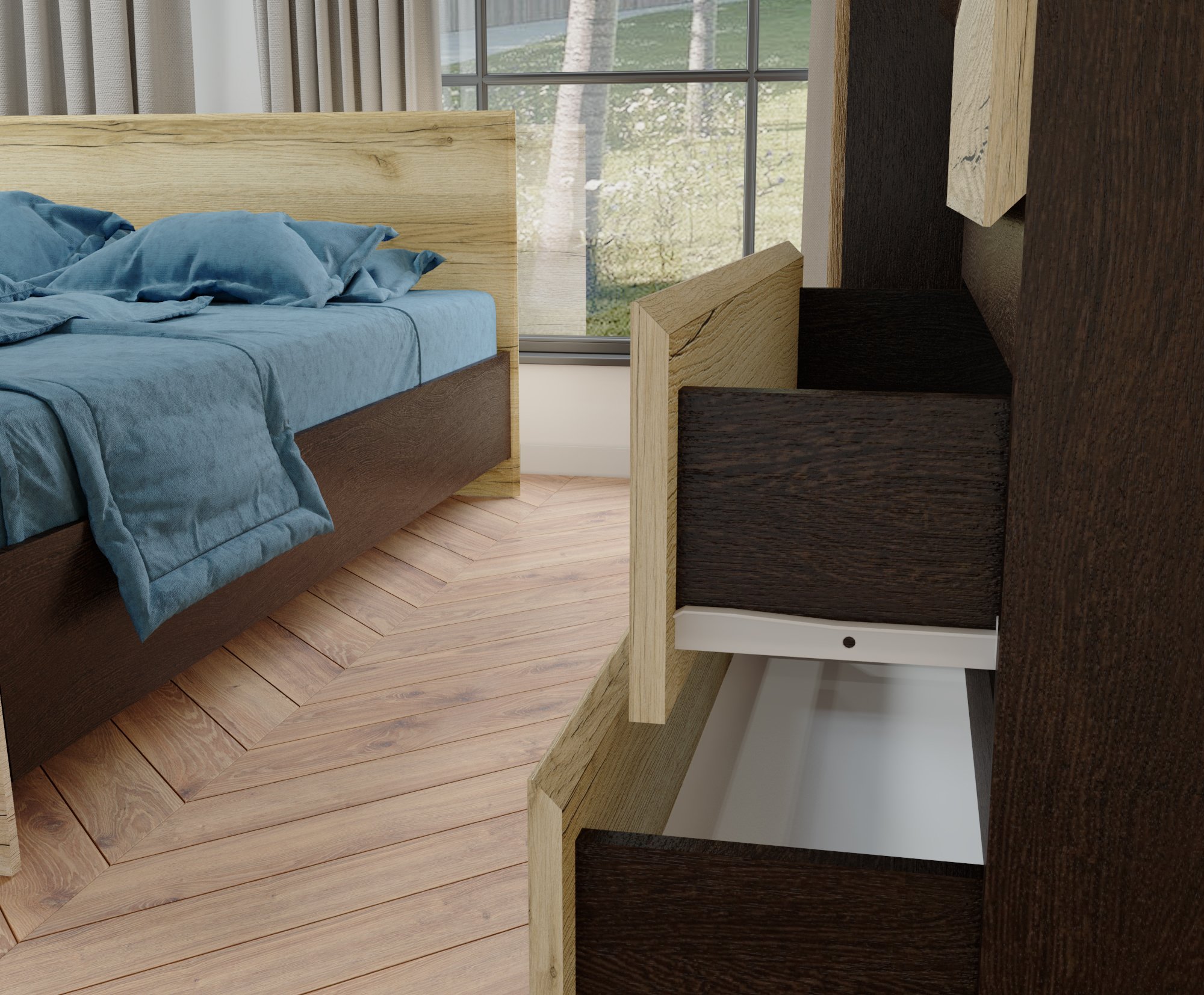 - ЛДСП Белый с тиснением дерева, Венге цаво/Дуб делано