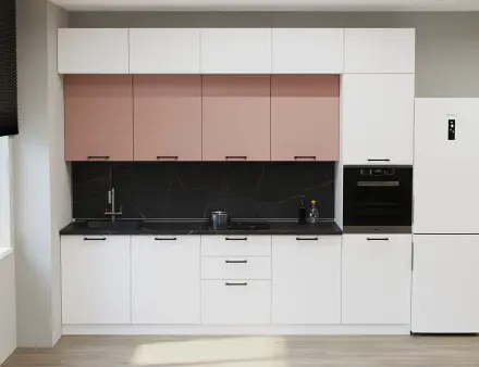 Аликанте 27: Цвет фасада: Шарли Pink, Шарли белый, корпус Серый, столешница 28мм: Каспий черное золото