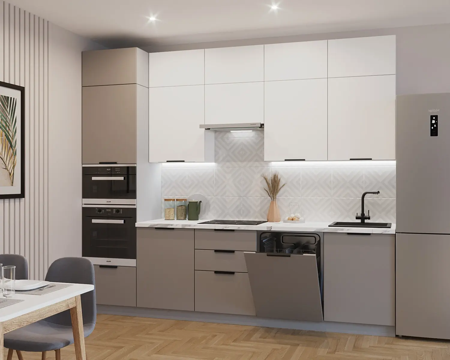 Магазин мебели «100Диванов» предлагает купить Кухонный гарнитур арт. 5 Обсидиан Тальк 3000 мм в Новом Уренгое по выгодным ценам от производителя с доставкой.