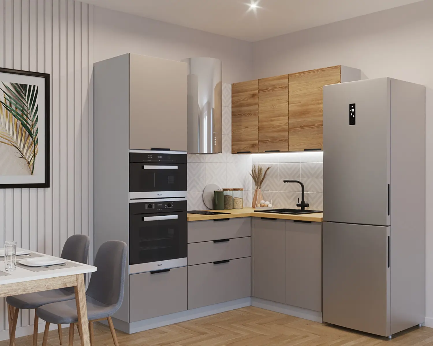 Магазин мебели «100Диванов» предлагает купить Кухонный гарнитур арт. 8 Обсидиан Рустик натур 2000х1400 в Новом Уренгое по выгодным ценам от производителя с доставкой.