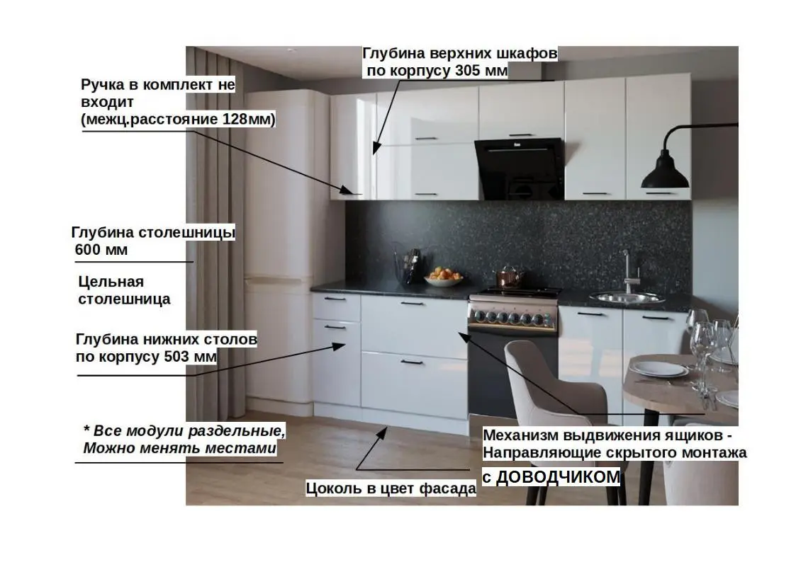 *Дополнительную информацию о том, как купить Кухонный гарнитур Белый глянец-14 (2600 мм) уточняйте у нашего менеджера по телефону 8 (800) 500-54-49.