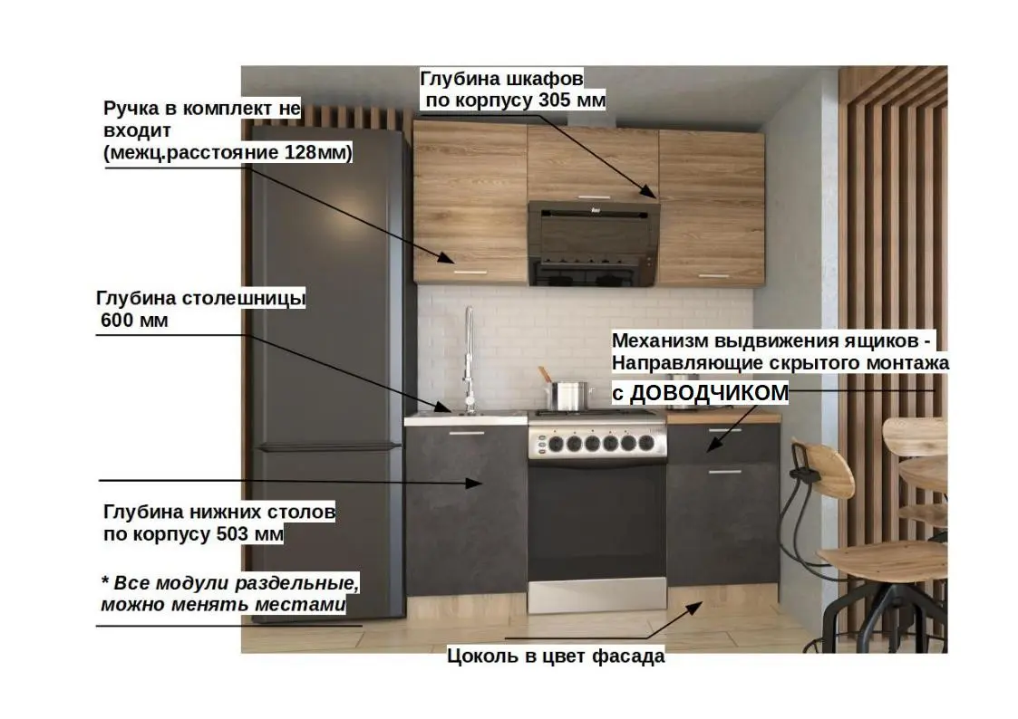 *Дополнительную информацию о том, как купить Кухонный гарнитур ЛОФТ-13 (1600 мм) уточняйте у нашего менеджера по телефону 8 (800) 500-54-49.