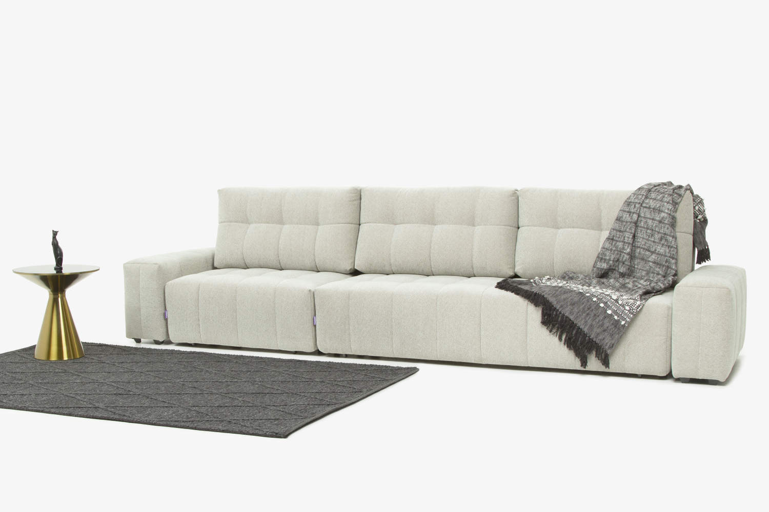 Модульная коллекция «Брайтон» — это сочетание технологий и минимализма. Особенностью коллекции является положение RELAX, которое увеличивает глубину сиденья на 30%. Подушки изготовлены из кокосовой койры — одного из самых экологичных и долговечных материалов. Благодаря своей специальной форме, они идеально подстраиваются под изгибы тела, усиливая эффект от положения RELAX. В основании дивана металлический каркас HEAVY METAL, с дополнительной гарантией 67 месяцев. Вы легко сможете разложить диван с помощью механизма «еврокнижка» со стальными направляющими AURORA STEEL. Ортопедическое наполнение AURORA FORM, сделает ваш сон здоровым и крепким. Уникальная система прошивки SOFT LINE обеспечивает пышность и мягкость форм, минимизируя растяжение ткани. В коллекции «Брайтон» большое количество мест для хранения.\
