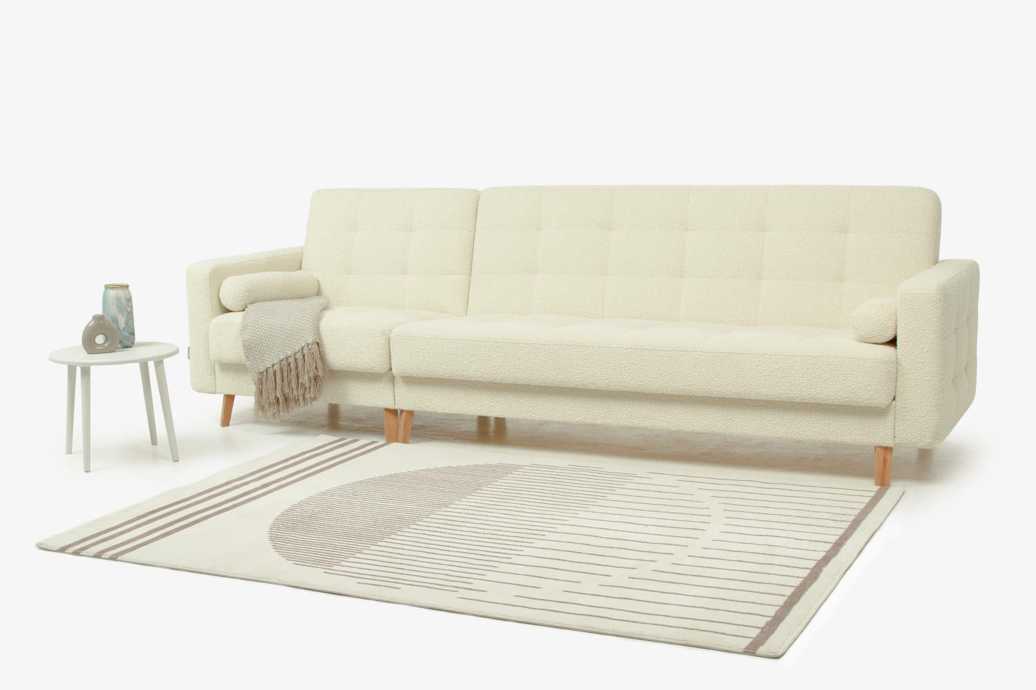 Диван «Скандинавия 3+1» - классический представитель скандинавского стиля. Его лаконичный дизайн с деревянными ножками из бука, удобными валиками и прямоугольной стежкой удачно дополнит любой интерьер. На таком диване приятно принимать гостей, удобно сидеть и комфортно спать.