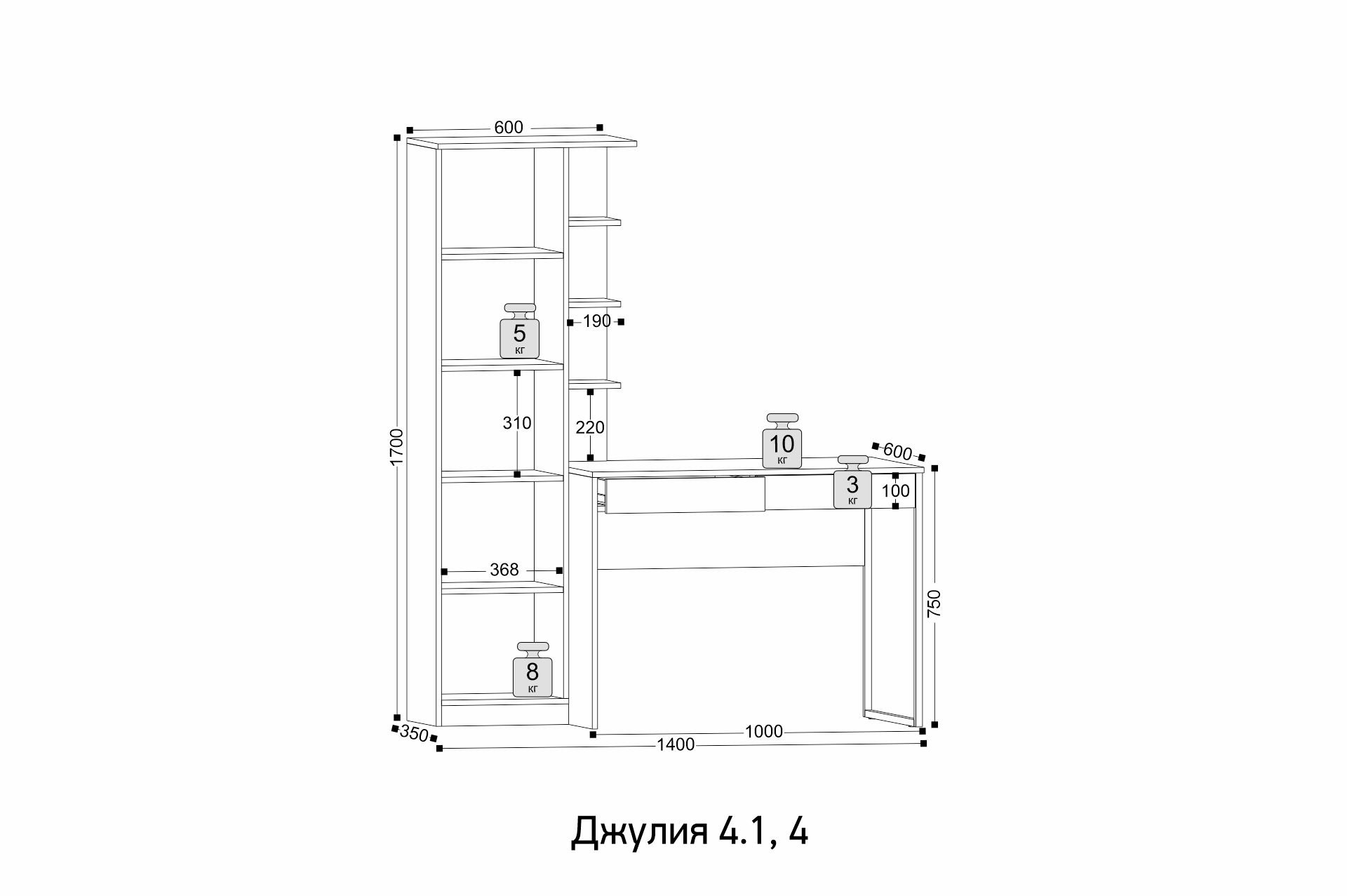 Магазин мебели «100Диванов» предлагает купить Пенал (надстройка) к столу письменному Джулия 4.1 в Новом Уренгое по выгодным ценам от производителя с доставкой.