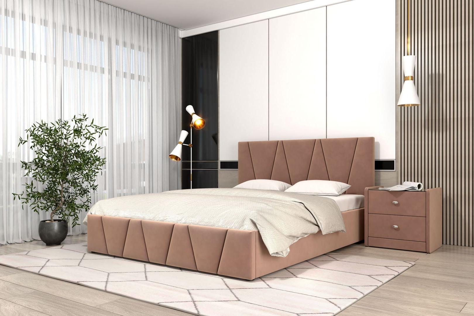 Кровать с мягким изголовьем Вендетта украшена стёжкографией в виде геометрического узора на спинке и изножье. Отделка придает декору строгости и лаконичности, а мягкая обивка - комфорта и роскоши. Интерьерная кровать Вендетта комплектуется металлокаркасом и дополнительно может быть оснащена подъемным механизмом с газовым амортизатором (газлифтом). Двуспальные мягкие кровати БРАВОмебель имеют надежный каркас из МДФ, фанеры и ЛДСП. В качестве наполнителя используются различные материалы, такие как холкон, поролон и периотек, которые обеспечивают мягкость, комфорт и долговечность изделия. Внешний слой обивки кровати выполнен из износостойкой качественной ткани.