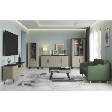 Модульная гостиная Фиделия исполняется в классическом стиле и спокойных цветах. Модель сочетает в себе простоту и функциональность, но при этом не выглядит громоздко. Она гармонично впишется в пространство, не утяжеляя его.